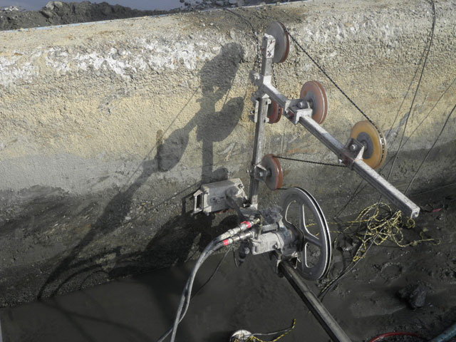 ワイヤーソー工法にてコンクリート構造物の切断: